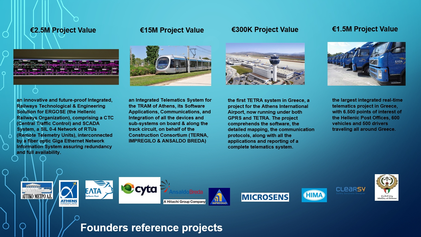 Founders and Governance have a passion for R&D in Technology and their track record is rich of joint venturing in National and European consortia (ESPRIT, PAVE, TELEMATICS, TRANSPORT) together with Engineering or Technological partners to develop innovative and futureproof technologies. This experience produced an important intellectual property capital, exceeding one hundred man-years of R&D.
